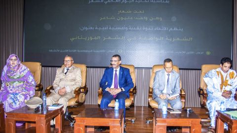 أشرف معالي وزير الثقافة والفنون والاتصال والعلاقات مع البرلمان، الناطق باسم الحكومة، السيد الحسين ولد مدو، مساء الاثنين، بالأكاديمية الدبلوماسية بنواكشوط، على افتتاح ندوة نقدية وأمسية أدبية نظمها اتحاد الأدباء والكتاب ا