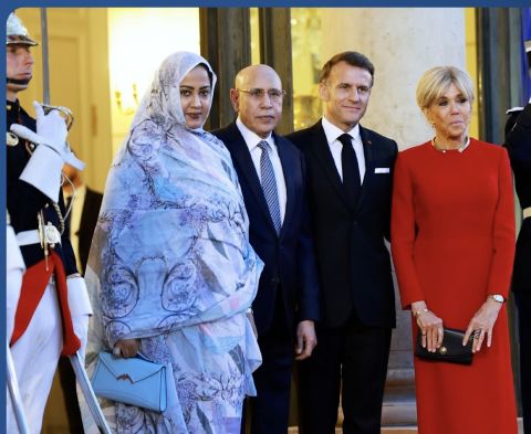 حضر رئيس الجمهورية، السيد محمد ولد الشيخ الغزواني، والسيدة الأولى الدكتورة مريم محمد فاضل الداه، مساء اليوم الأربعاء في قصر الإليزيه بباريس، مأدبة عشاء رسمية أقامها الرئيس الفرنسي إيمانويل ماكرون والسيدة الأولى بريجيت م