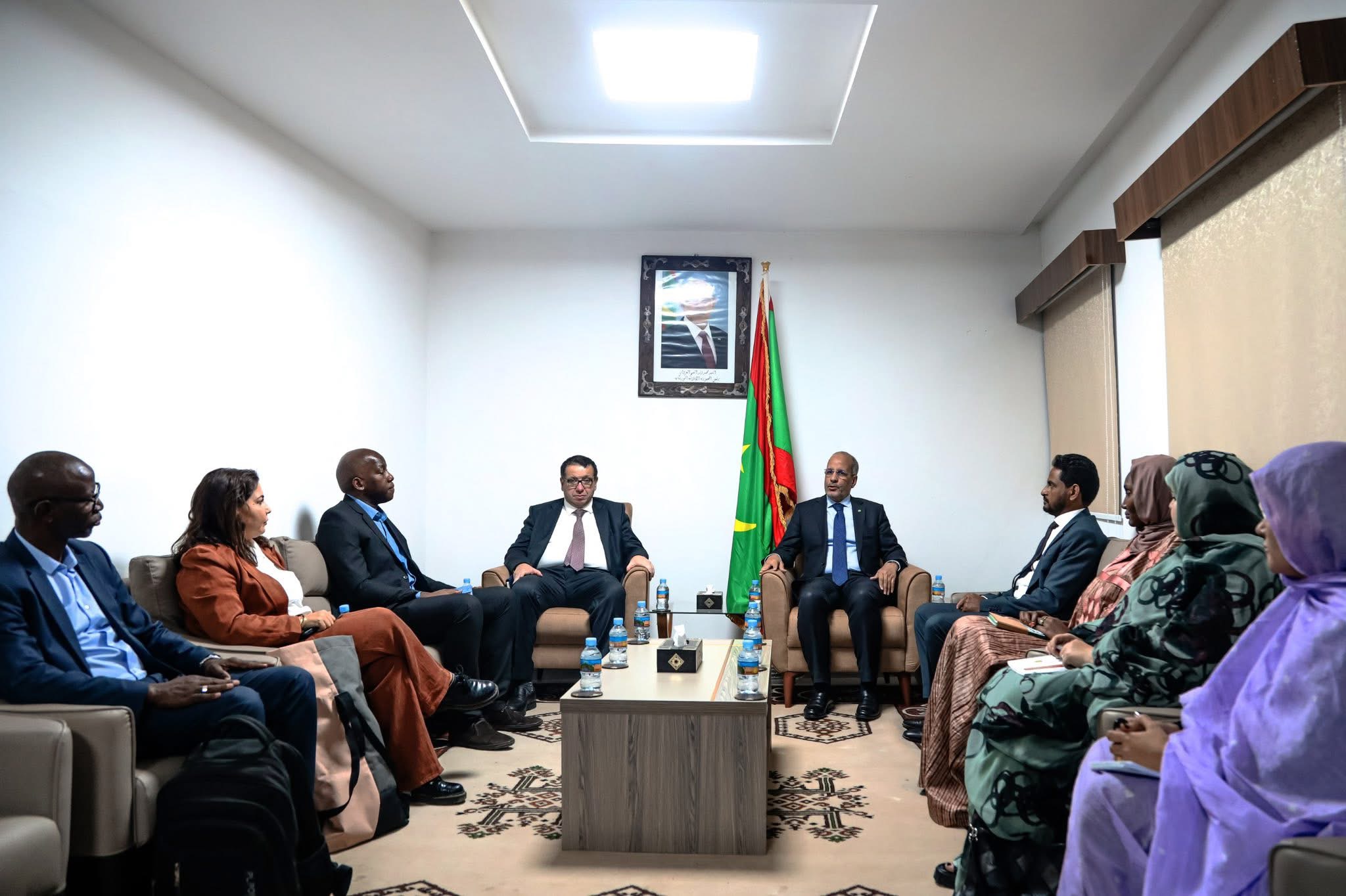 استقبل معالي وزير التكوين المهني والصناعة التقليدية والحرف، السيد محمد ماء العينين ولد أييه، اليوم، بعثة من المنظمة الدولية للشغل (OIT)، برئاسة المدير الإقليمي للمنظمة الدكتور حكيم حمزاوي، وتضم كلّ