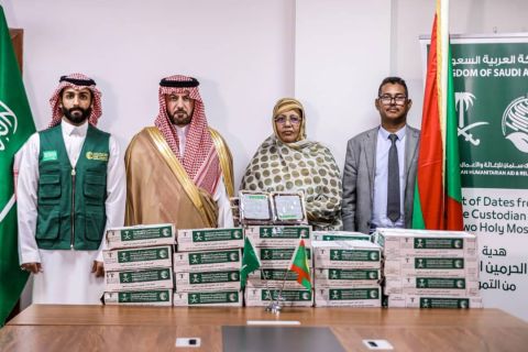 أشرفت معالي مفوضة الأمن الغذائي، السيدة فاطمة بنت خطري، اليوم الأربعاء، بمباني المفوضية، على تسلم كمية من التمور، هدية من مركز الملك سلمان للإغاثة والأعمال الإنسانية في المملكة العربية السعودية الشقيقة.