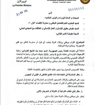 واكد الوزير الأول في تعميم حظر تبني خطاب الكراهية أو التفرقة أو التحريض الإثني، أو الإدلاء بأي أقوال أو نقلها من شأنها تغذية الكراهية أو زرع الشك أو إثارة التفرقة، أو اعتماد أي خطاب يتعارض مع مقتضيات التماسك الاجتماعي.