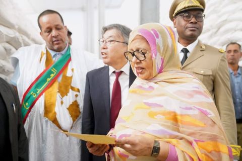 أشرفت معالي مفوضة الأمن الغذائي، السيدة فاطمة بنت محفوظ ولد خطري، رفقة سعادة السفير الياباني، السيد أوتشيدا هيرويكي، اليوم الاثنين في نواكشوط، على استلام 4331 طنا من الأرز، في إطار برنامج العون الغ