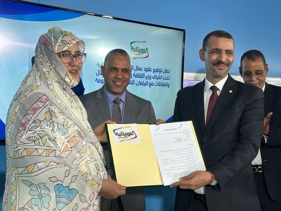 أشرف معالي وزير الثقافة والفنون والاتصال والعلاقات مع البرلمان، الناطق باسم الحكومة، السيد الحسين ولد مدو، ظهر اليوم،، على حفل توقيع عقود العمل الخاصة بالتسوية النهائية لملف المتعاونين في الإعلام العمومي، تنفيذاً للتعليمات السامية لفخامة رئيس الجمهورية الرامية إلى إنهاء هذا الملف بشكل عادل وشامل.