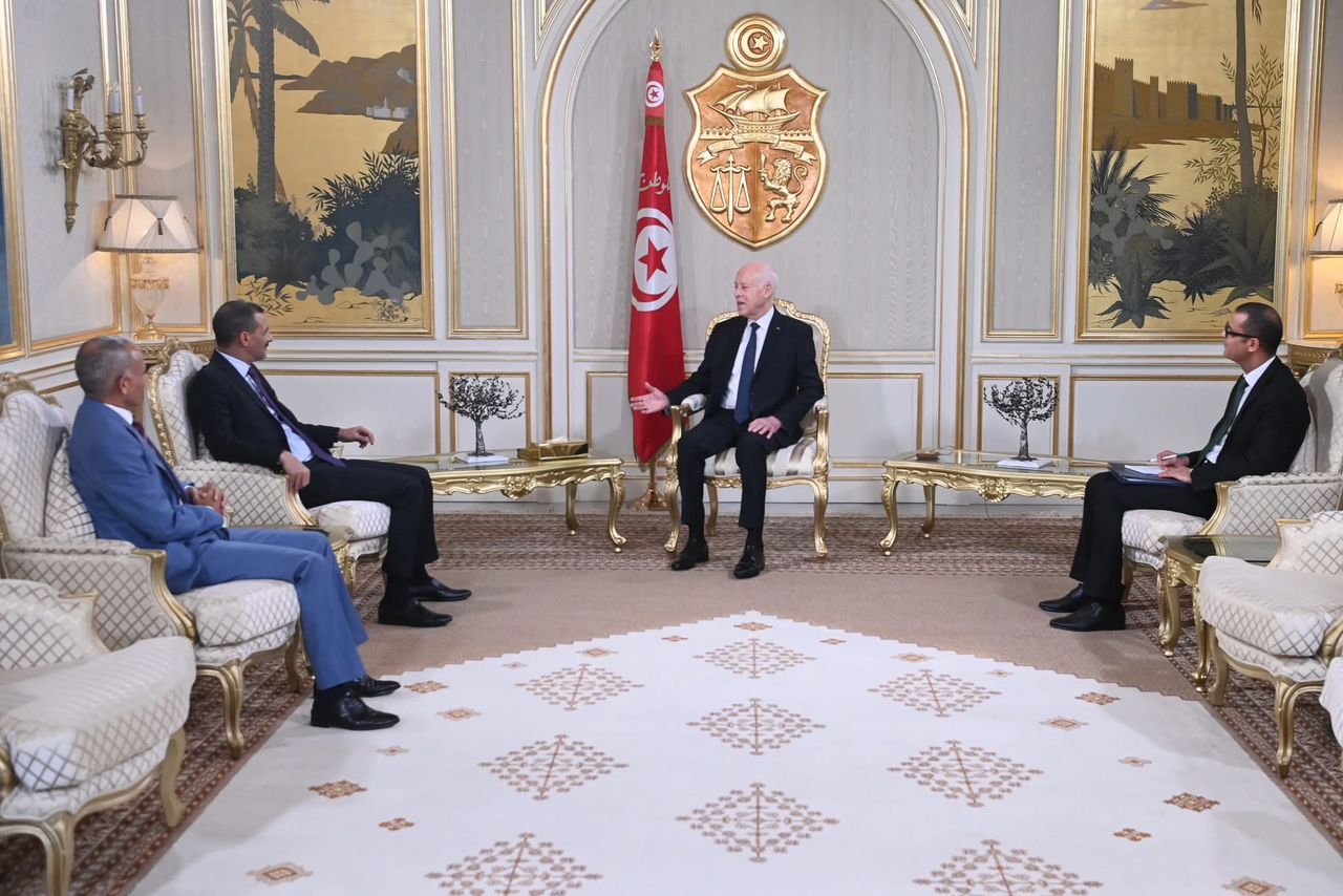 استقبل فخامة رئيس الجمهورية التونسية، قيس سعيّد، ظهر الجمعة 27 فبراير 2026 بالقصر الرئاسي بقرطاج، معالي وزير الثقافة والفنون والاتصال والعلاقات مع البرلمان، الناطق باسم الحكومة، السيد الحسين ولد مدو، الذي يؤدي زيارة إلى الجمهورية التونسية بصفته مبعوثًا خاصًا، محمّلًا برسالة خطية من فخامة رئيس الجمهورية السيد محمد ولد الشيخ الغزواني، تتعلق بتعزيز وترقية العلاقات الثنائية المتجذرة والمتميزة بين البلدين الشقيقين.
